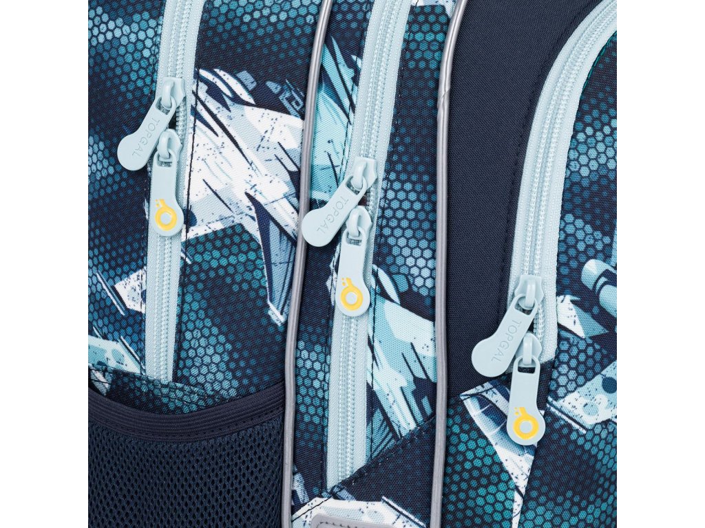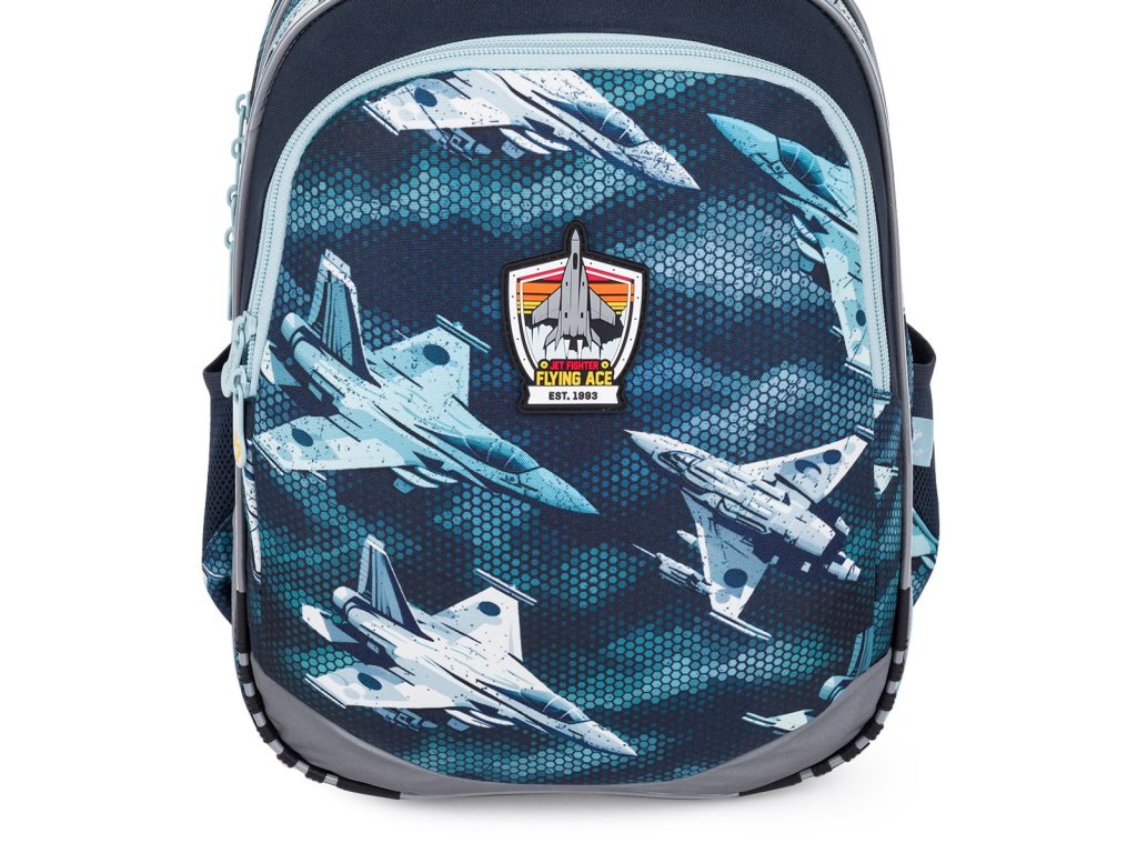 Do přední hluboké kapsy se vejde penál ve stejném designu nebo krabičku na svačinu, Je v ní také karabina, díky níž odpadne složité hledání klíčů na dně batůžku. Boční kapsy skvěle udrží lahve o objemu 0,5 litru.