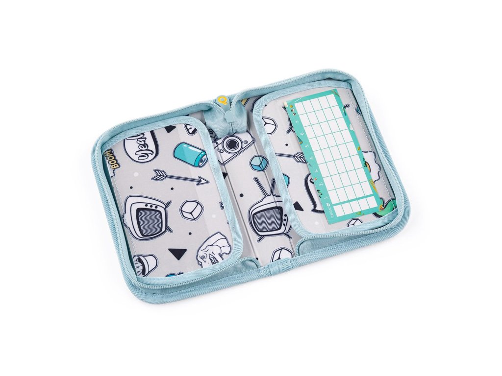 Kvalitní dvouklopový školní penál Topgal PENN 24052 v modrém designu s motivem stíhaček. Nabízí 21 poutek na psací potřeby, 5 širších poutek na další pomůcky a vybarvovací...