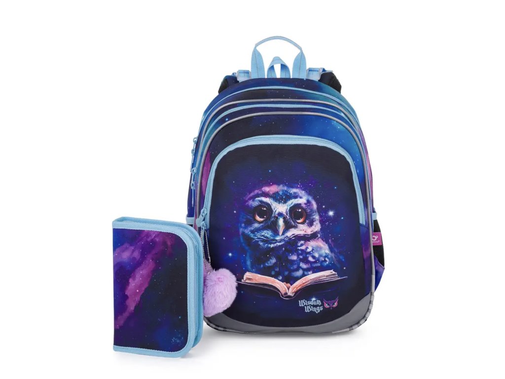 Model ELLY neváží ani kilogram, proto je ideální pro slečny s výškou od 115 cm od první až do čtvrté třídy ZŠ. Decentní kombinace barev, moudrá, ale roztomilá sova a plyšové srdíčko – co víc si může malá slečna přát?!