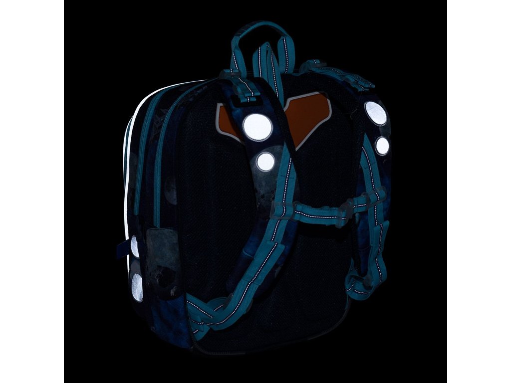 - reflexní prvky: na čele a bocích batohu, na ramenních popruzích