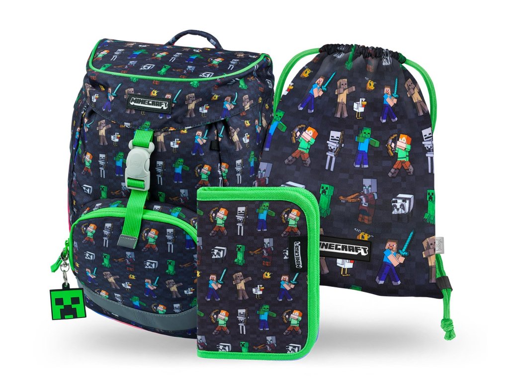 Školní set Baagl Airy Minecraft – batoh, penál a sáček na obuv