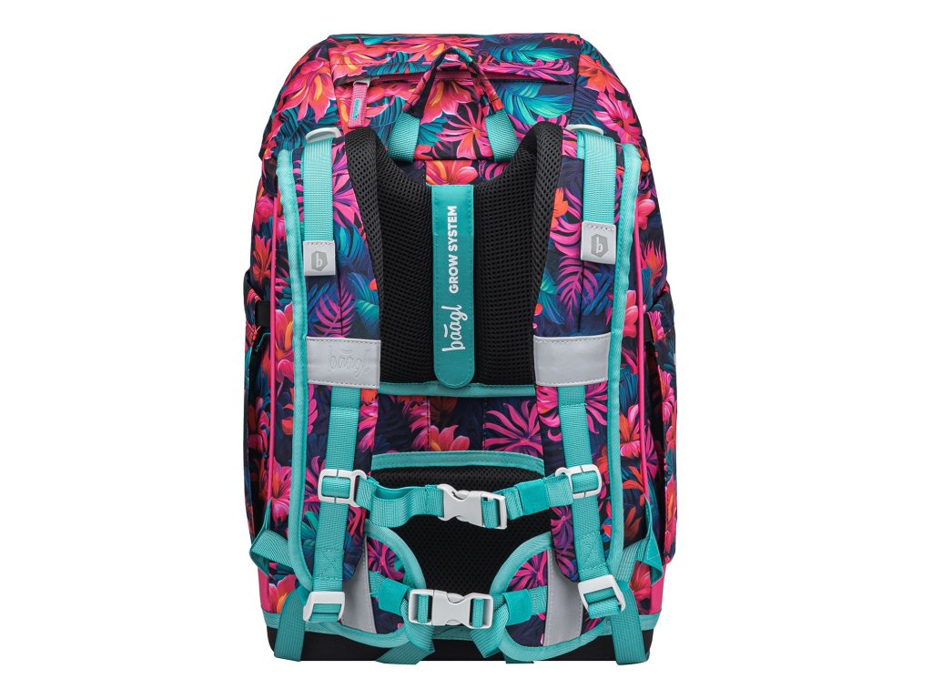 Batoh má anatomicky tvarovaná záda s integrovanou hliníkovou výztuží, která pomáhá správnému držení těla. Rostoucí zádový systém Grow System lze nastavit na tři různé velikosti, takže batoh roste společně s dítětem.