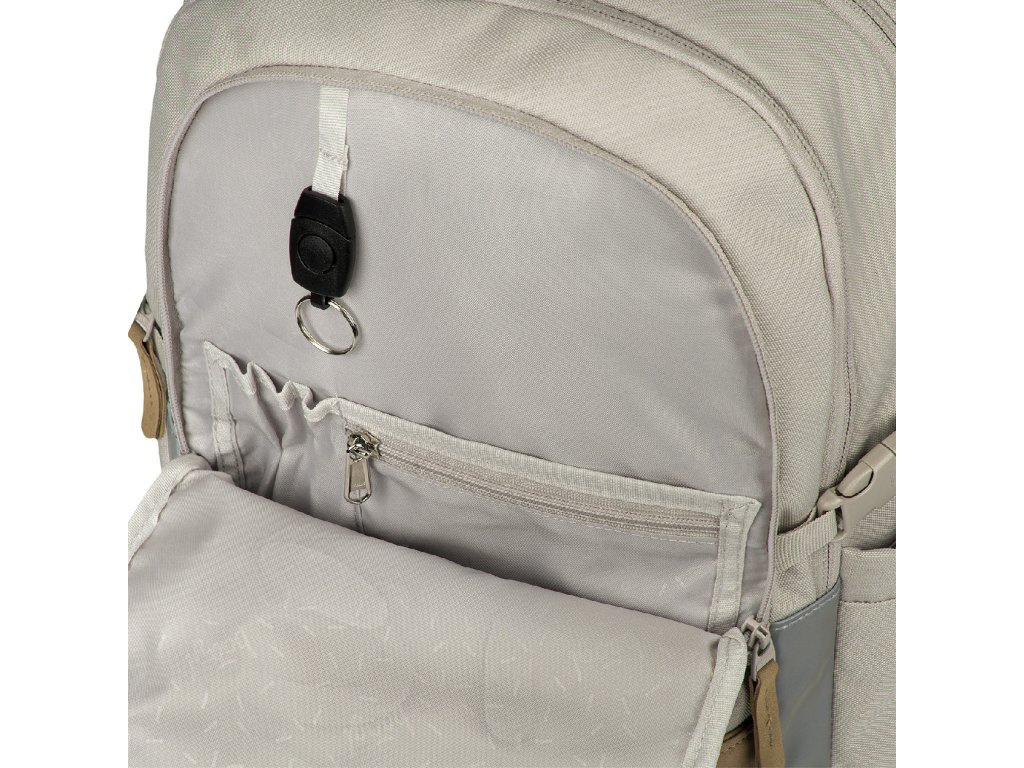 Vyrobený z recyklovaného voděodolného materiálu, doplněný o reflexní prvky a kvalitní zipy YKK. Boční kapsy skvěle padnou třeba na tritanovou lahev a design Mist doladí tvůj školní styl. Součástí je i stylový přívěsek!