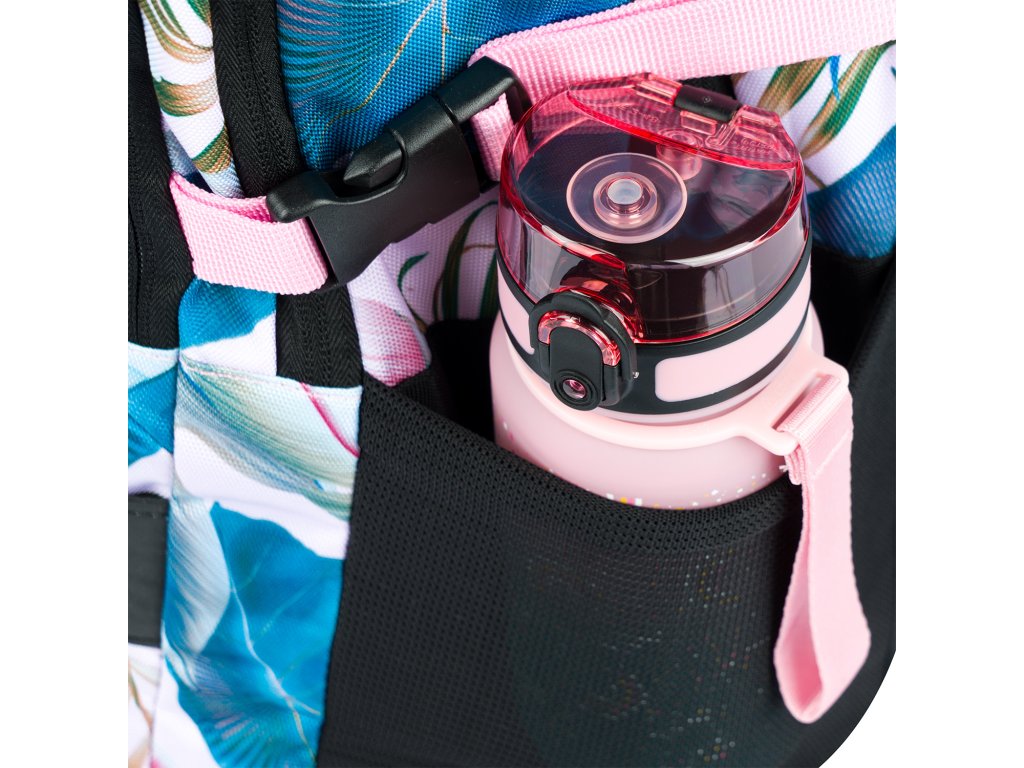 • Boční kapsy z pevné materiálu, které jsou vhodné pro jednu z našich lahví na pití.