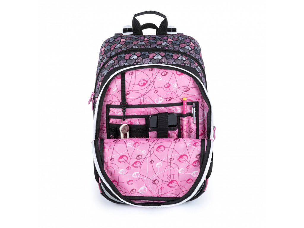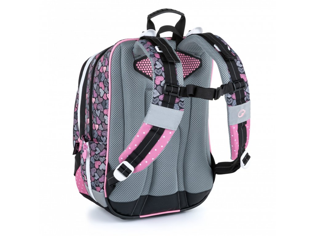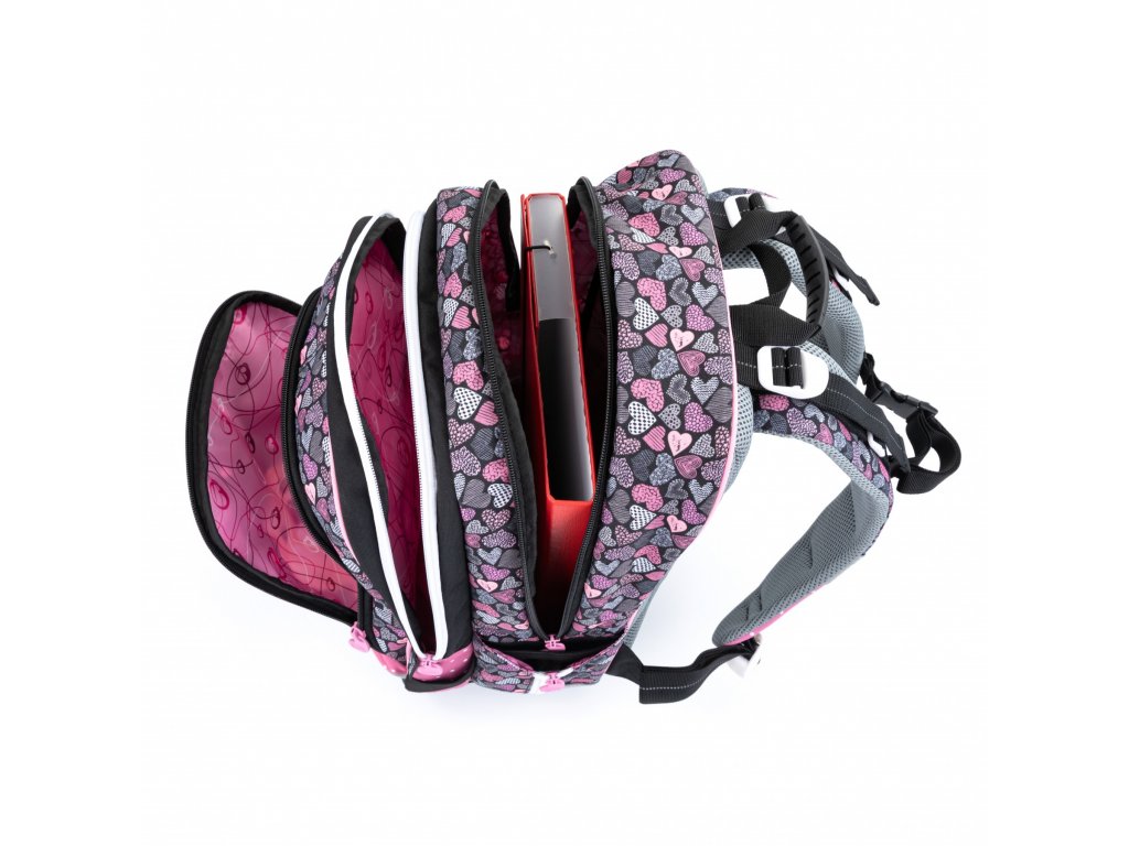 Dívčí školní batoh ALFA, má tři komory.záda dítěte a tím podporuje zdravý růst páteře a správný vývoj zad školáka.