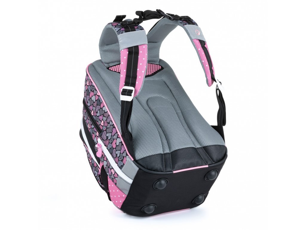 Naplněný školní batoh díky tomu dobře přiléhá k zádům školáka a je měkce polstrován, zejména kolem páteře a pod bederní částí páteře. Anatomické tvarování, polstrování včetně efektivních prohlubní, umožňuje dostatečnou cirkulaci vzduchu a tak minimalizuje pocení zad dítěte.