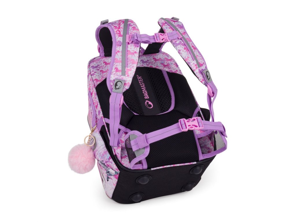- Podstava batohu je vyrobena z pevného, hustě tkaného a odolného materiálu. Spolu s komorami batohu tvoří pevný krunýř, ve kterém se učebnicím nebudou mačkat rožky ani sesouvat obaly.