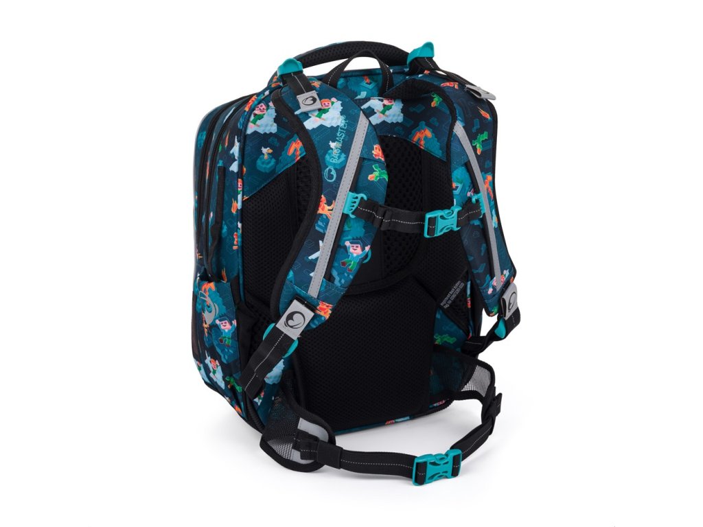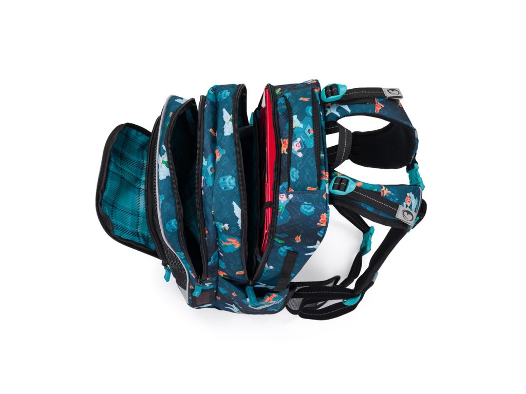 Batoh pro všechny dobrodruhy od 1. do 3. třídy, kteří rádi objevují svět. Má polstrovaná záda a ramenní popruhy, nastavitelný hrudní a vyjímatelný odlehčený bederní pás. Uvnitř je velmi prostorný. Mobil a peněženka najdou místo v praktickém organizéru v přední kapse. Samonavíjecí klíčenka na čip nebo klíče se dá připnout na boční poutko. Batoh váží necelý kilogram. Má plastové nožky, aby dobře stál nejen u lavice. A školák bude nepřehlédnutelný díky originálnímu motivu i díky reflexním prvkům.