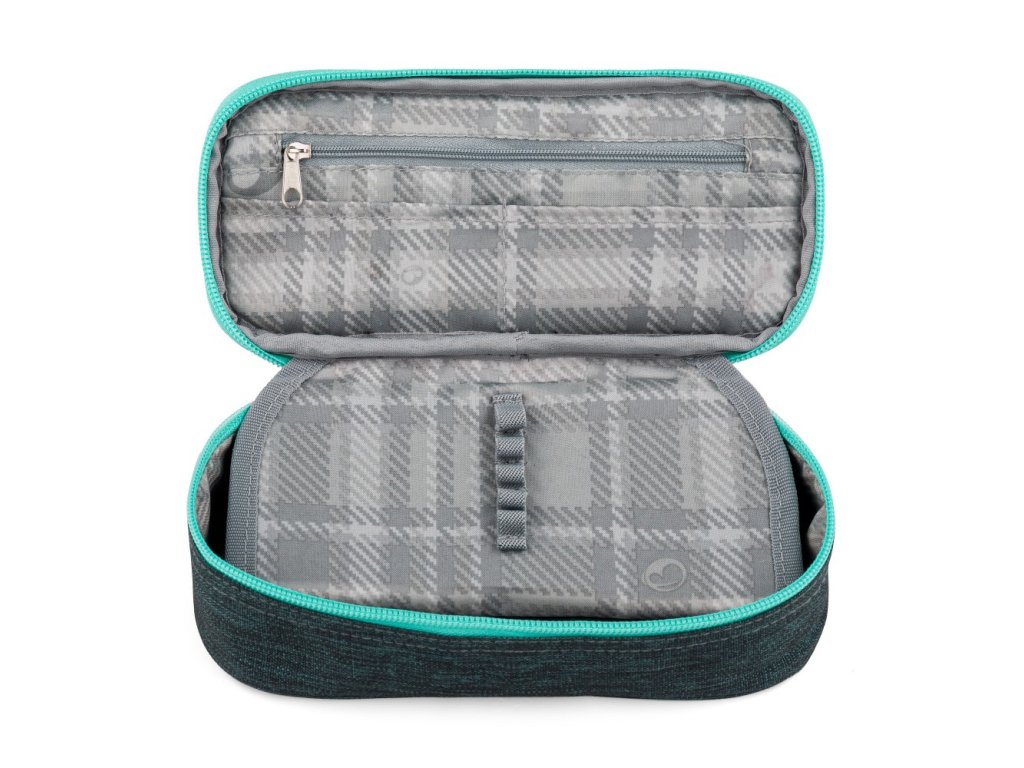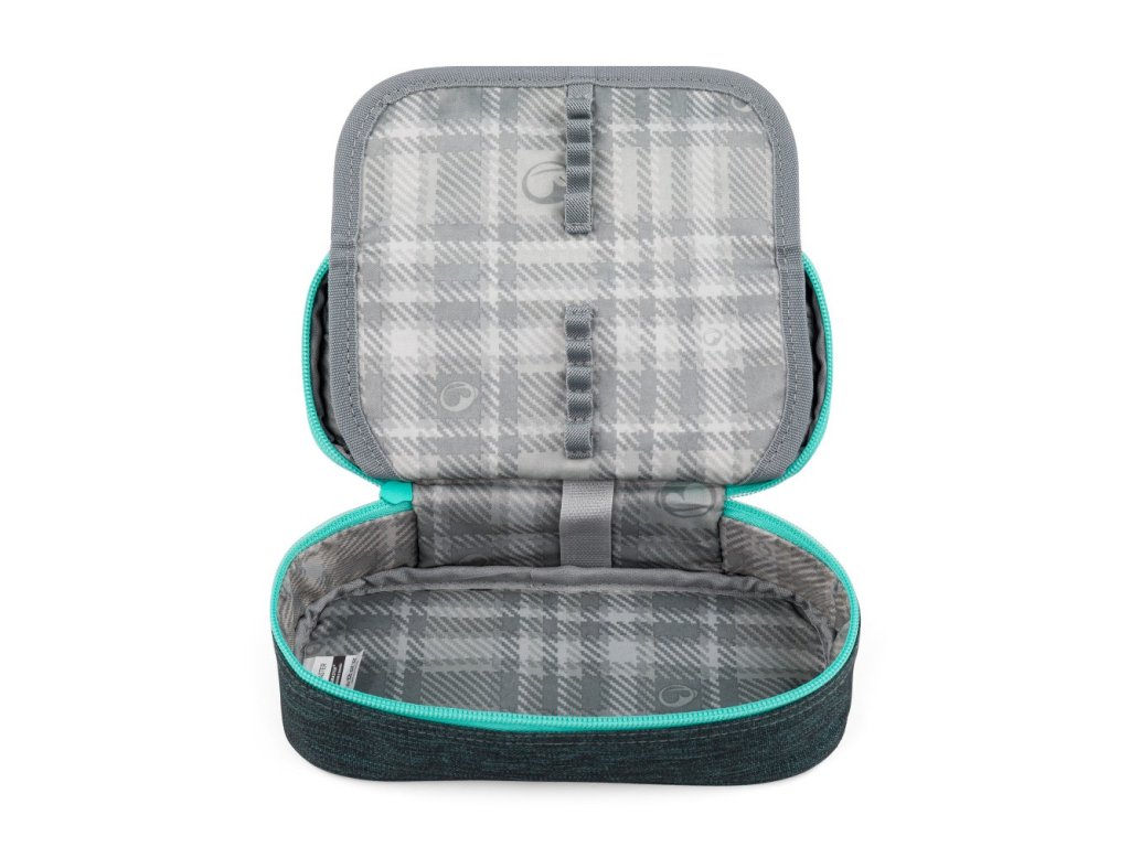 - Na přepážce je 20 gumových úchytů na pera, pastelky, nůžky i kružítko. Přepážku lze sepnout gumičkou se suchým zipem.