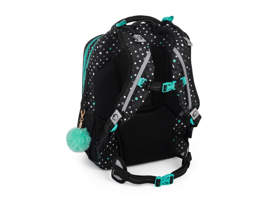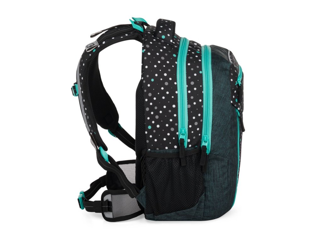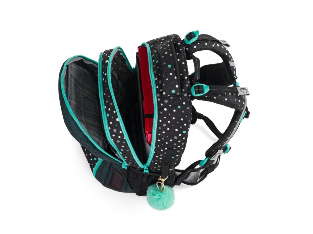 - Díky bederní a hrudní přezce Ti bude baťoh hezky sedět na zádech. Můžeš tak do školy vyrazit na kole, na koloběžce nebo se pohodlně rozběhnout na autobus.