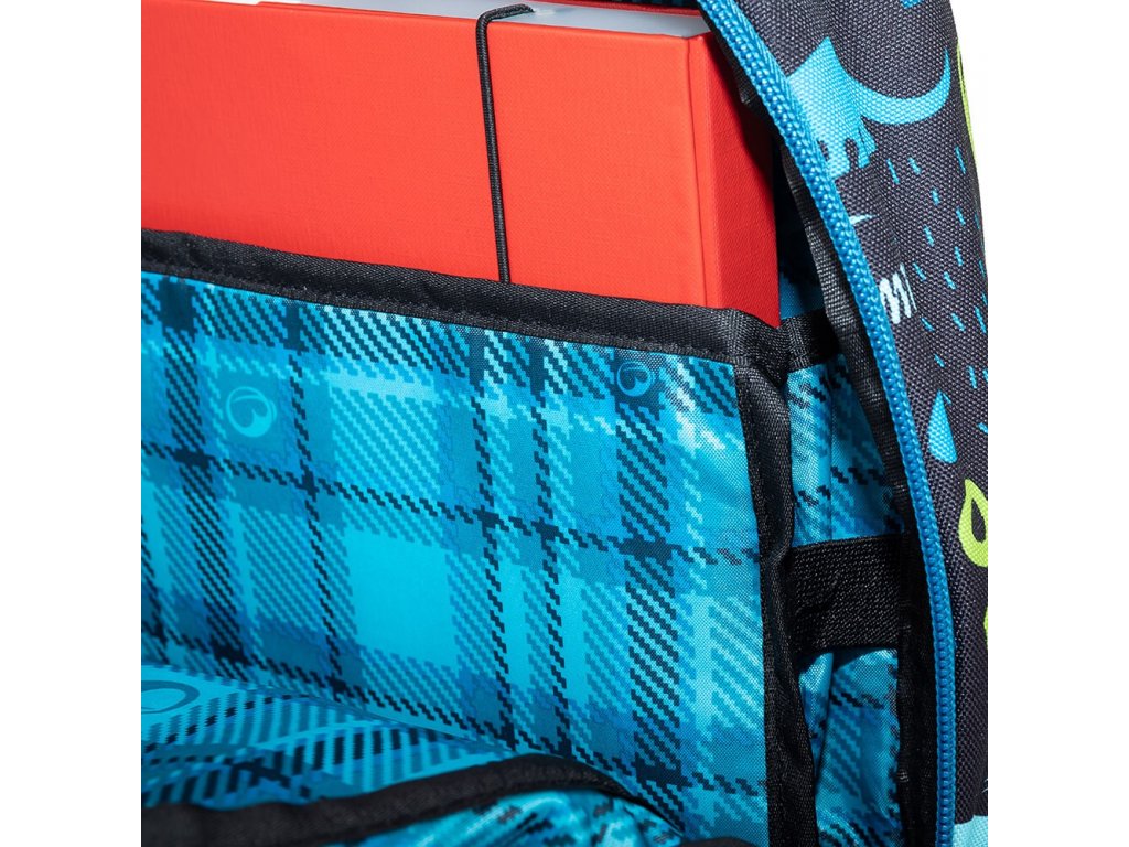 - V hlavní komoře je kompresní kapsa na desky A4 a na velké těžké učebnice. Pomáhá udržet těžiště co nejvíce u zad a školák či školačka se tak při chůzi nehrbí.