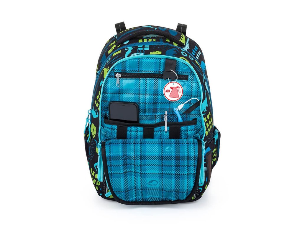 - Modrozelený dinosauří svět Ti bude věrným parťákem od prvního školního dne. Navíc si díky němu batoh poznáš i na hromadě v šatně nebo před družinou.