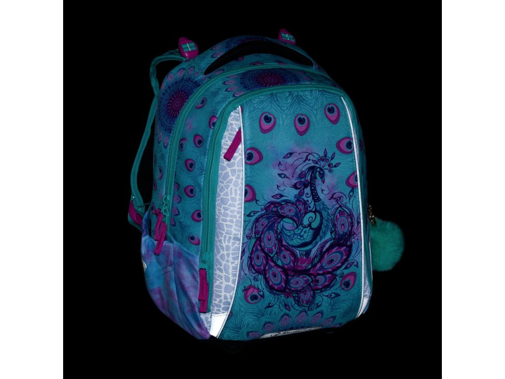 - Batoh má spoustu výrazných reflexních prvků, díky kterým bude malý školák v bezpečí (ze přední strany, po stranách i zezadu na ramenních popruzích). Přesvědčit se můžete tak, že batoh vyfotíte s bleskem.