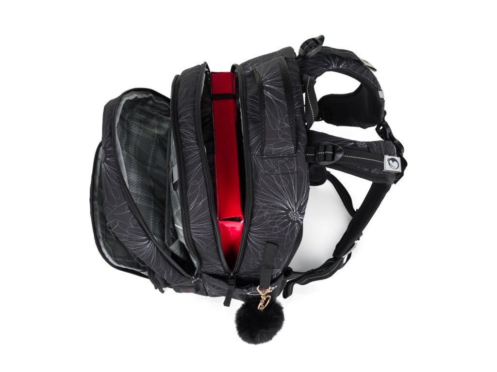 - Správné držení těla při chůzi podporuje i vnitřní kompresní kapsa v hlavní komoře. Je určena na nejtěžší učebnice a také slouží k udržení těžiště co nejvíc u zad.