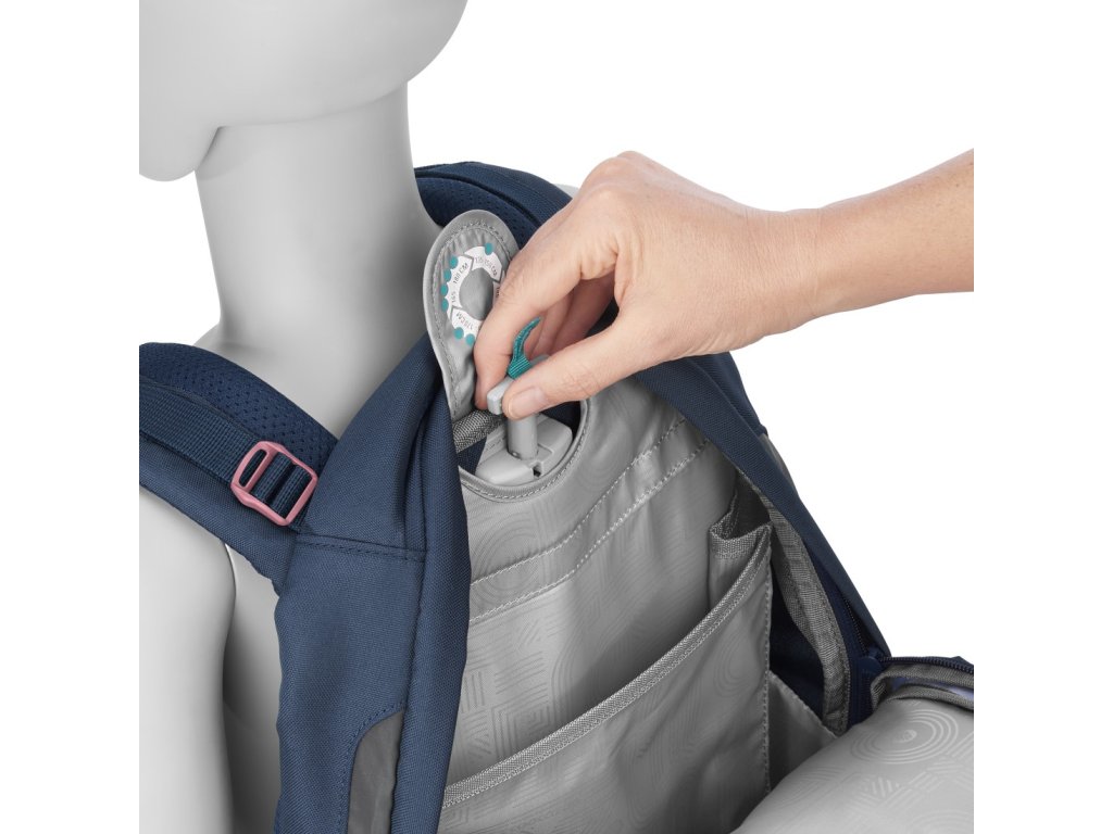 - možnost plynulého výškového nastavení ramenních popruhů pomocí otočného mechanismu uvnitř aktovky zajišťuje