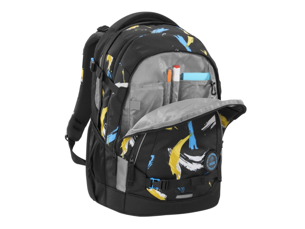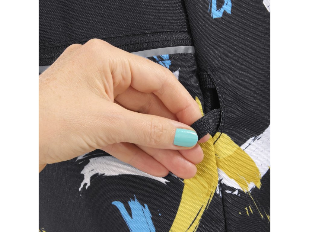- 2 upevňovací pásky na přední straně batohu pro upevnění např. skateboardu, bundy nebo helmy nebo reflexních pásků