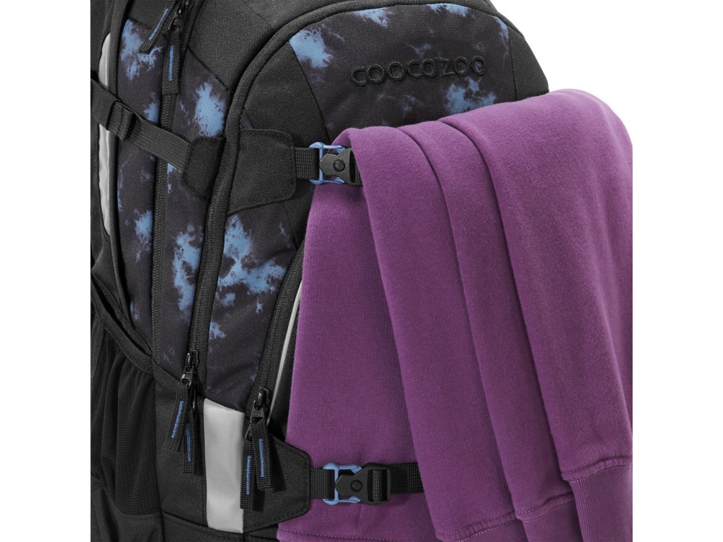 - 2 upevňovací pásky na přední straně batohu pro upevnění např. skateboardu, bundy nebo helmy nebo reflexních pásků