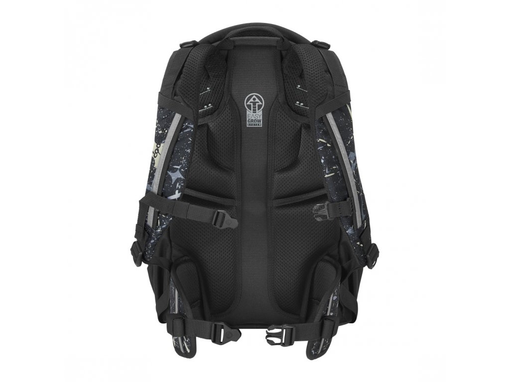 - 2 upevňovací pásky na přední straně batohu pro upevnění např. skateboardu, bundy nebo helmy nebo reflexních pásků