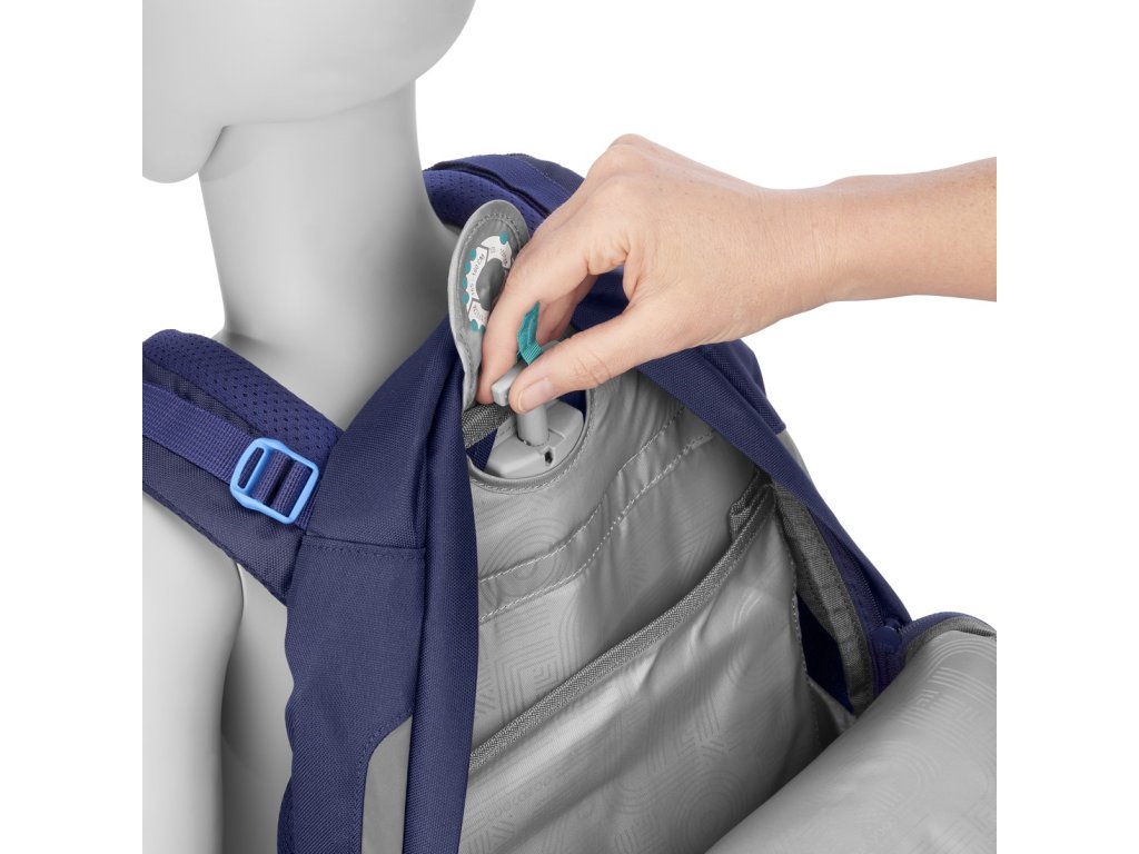 - možnost plynulého výškového nastavení ramenních popruhů pomocí otočného mechanismu uvnitř aktovky zajišťuje