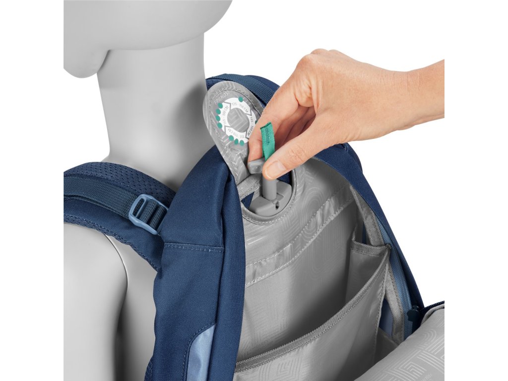 - možnost plynulého výškového nastavení ramenních popruhů pomocí otočného mechanismu uvnitř aktovky zajišťuje