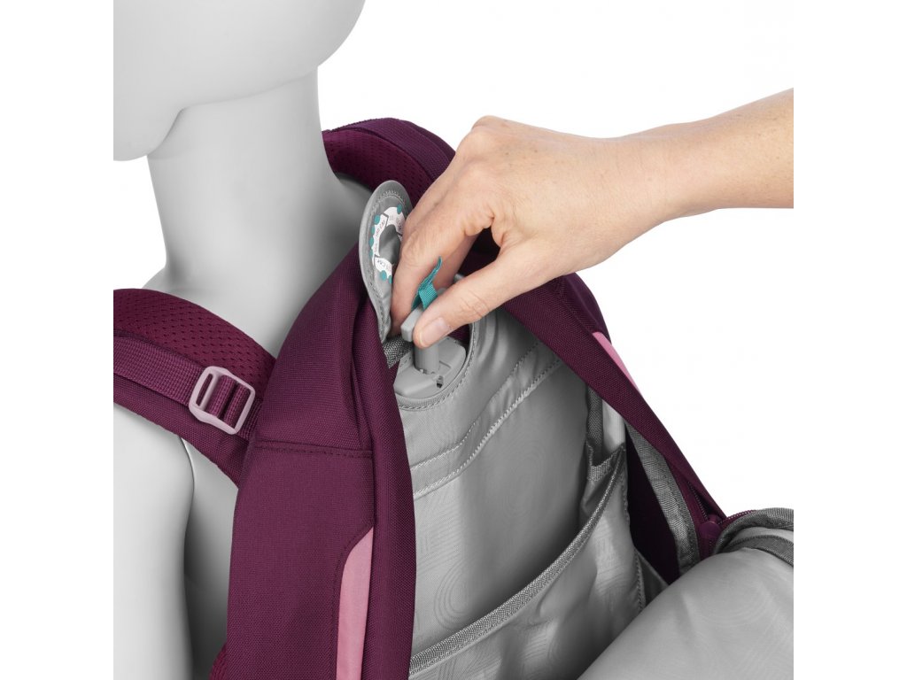 - možnost plynulého výškového nastavení ramenních popruhů pomocí otočného mechanismu uvnitř aktovky zajišťuje