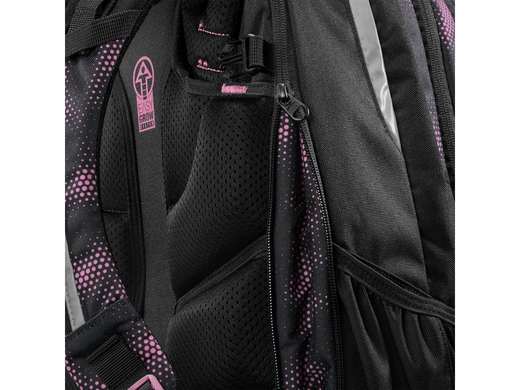 - možnost plynulého výškového nastavení ramenních popruhů pomocí otočného mechanismu uvnitř aktovky zajišťuje