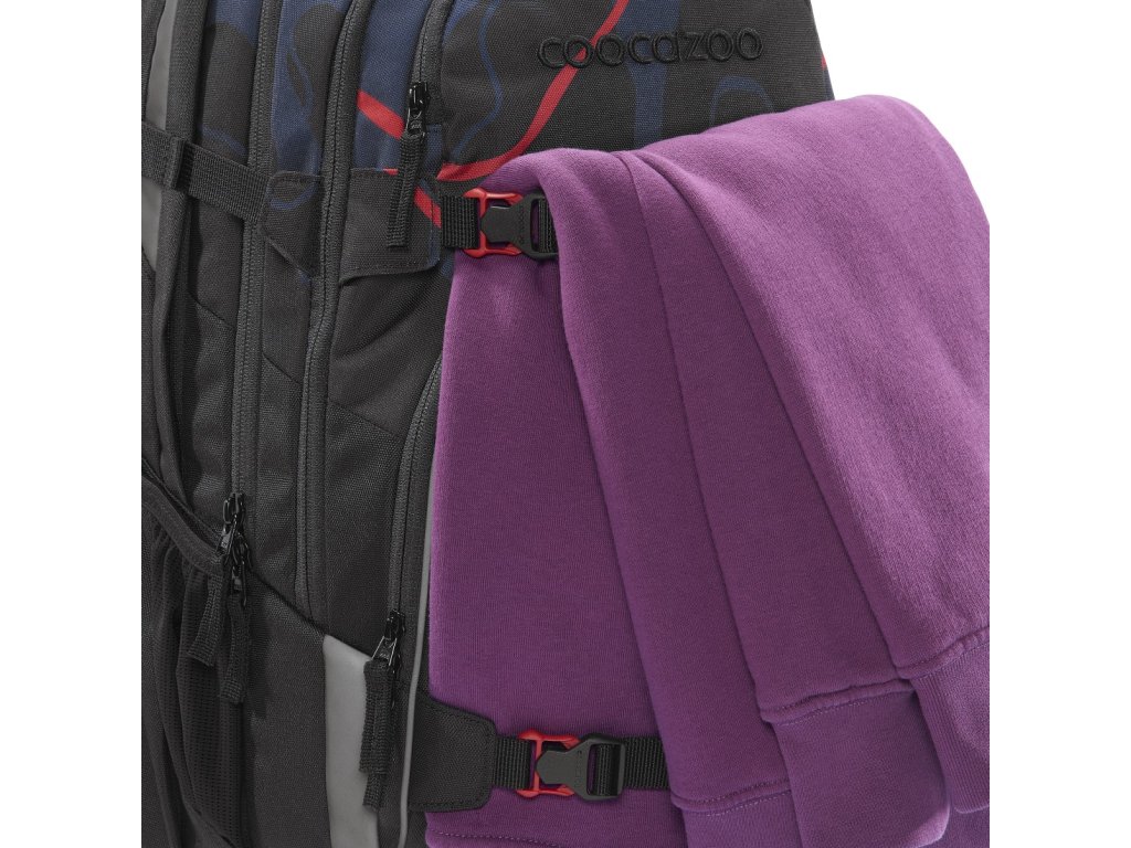 – 2 upevňovací pásky na přední straně batohu pro upevnění např. skateboardu, bundy nebo helmy nebo reflexních pásků