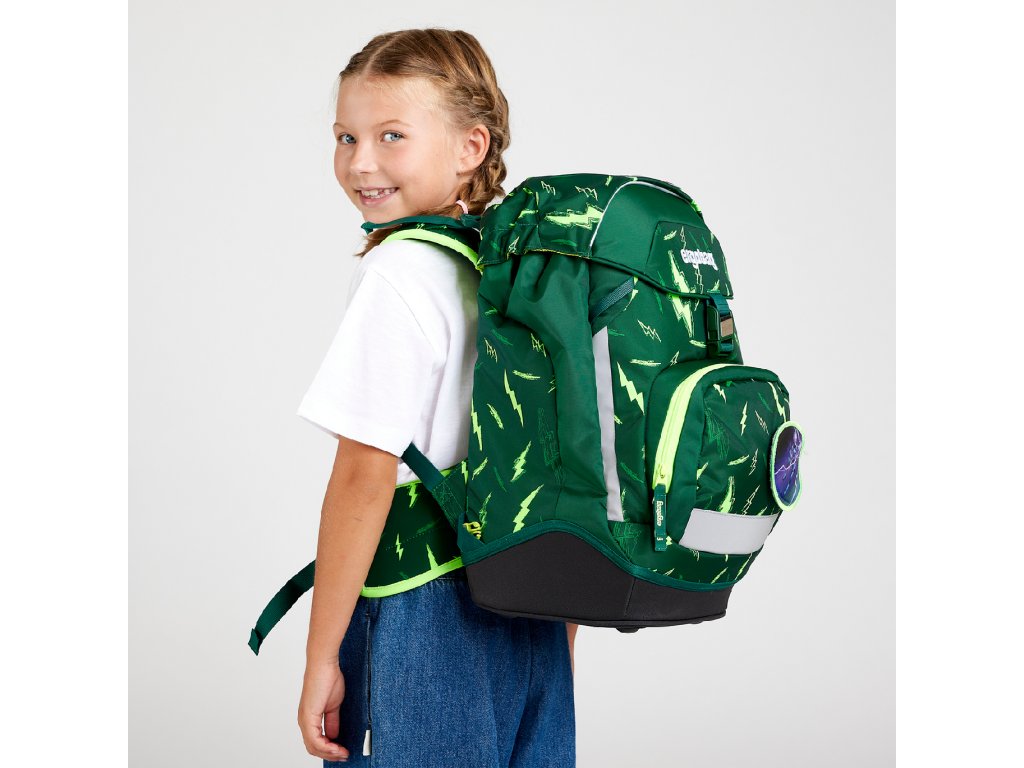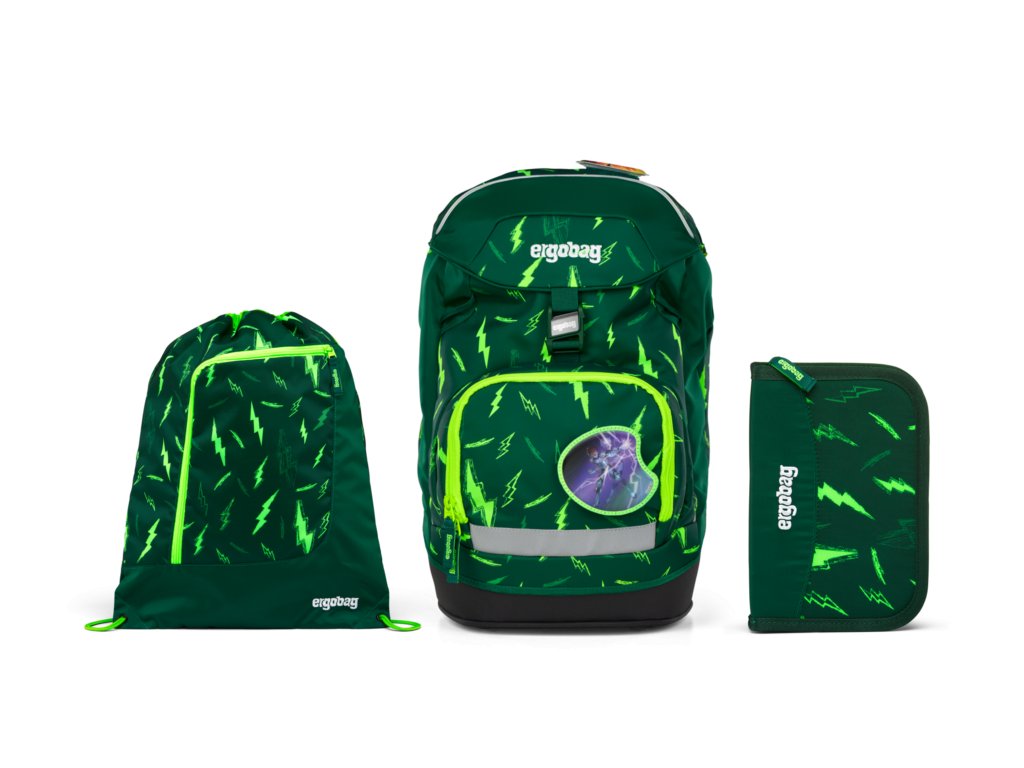 Školní set je tvořen školním batohem Ergobag prime se 2 Kletties, vyplněným penálem v barvě batohu a praktickým sportovním pytlem. Jednopatrový penál s chlopní je vybaven standartní výbavou – 6x Lyra pastelka silná, 10x Lyra pastelka tenká, tužka, ořezávátko, pravítko, guma. Sportovní pytel nahrazuje sportovní tašku. Lze jej připevnit 3-bodově na školní batoh nebo nosit i samostatně.