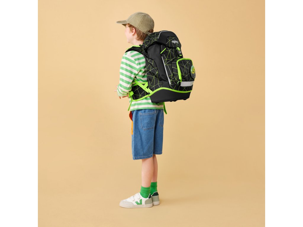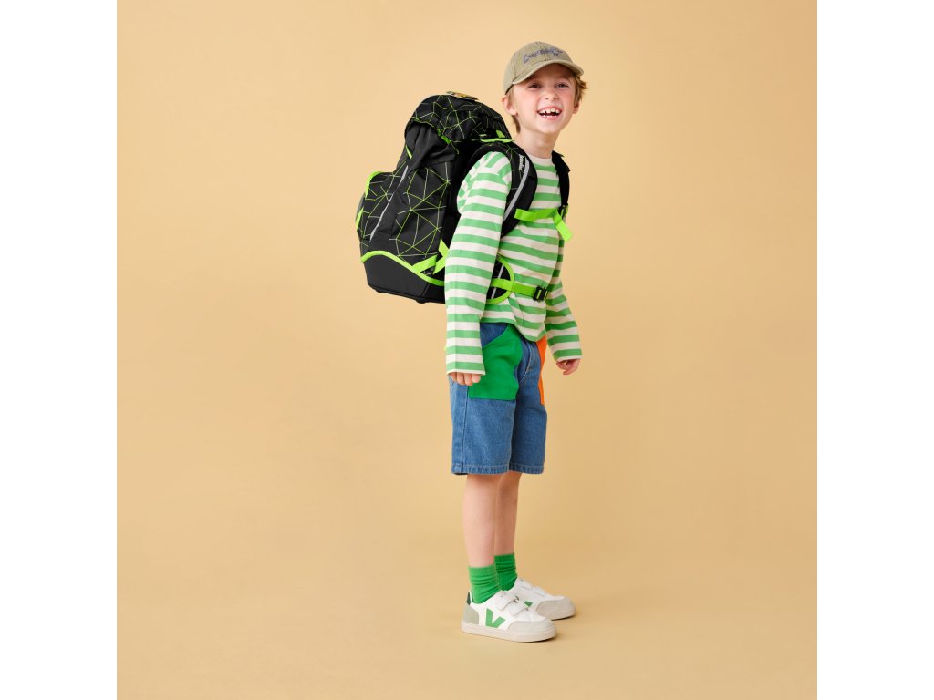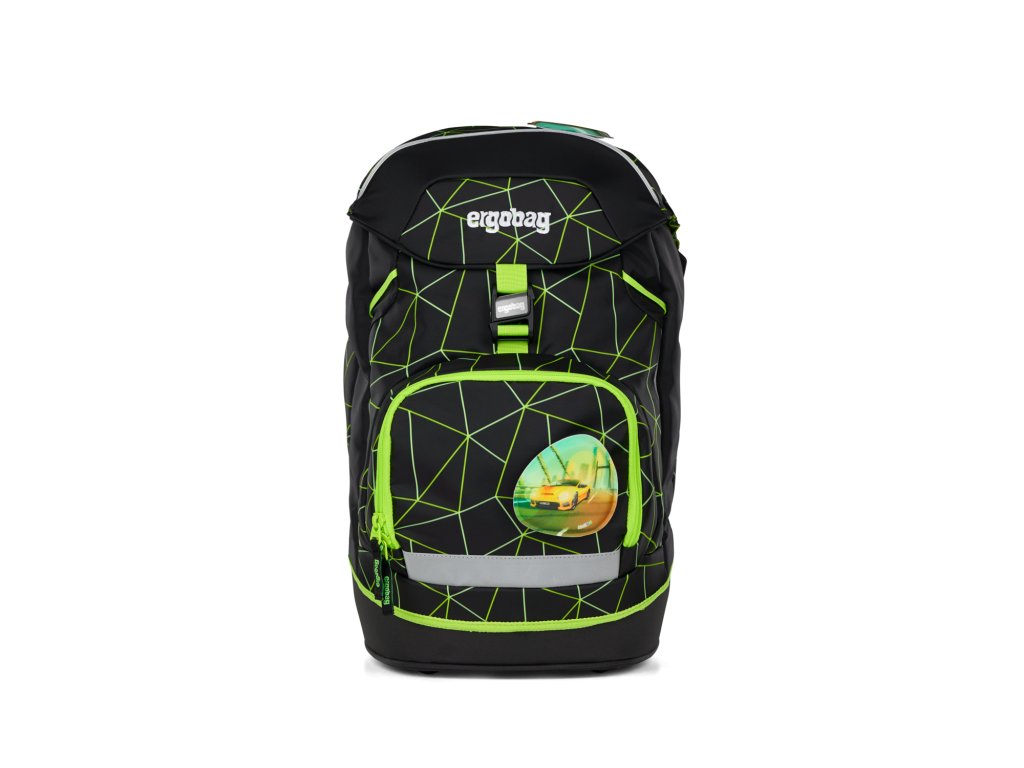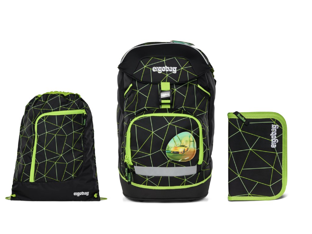 Školní batoh Ergobag v setu Fluo race + Dárek ZDARMA