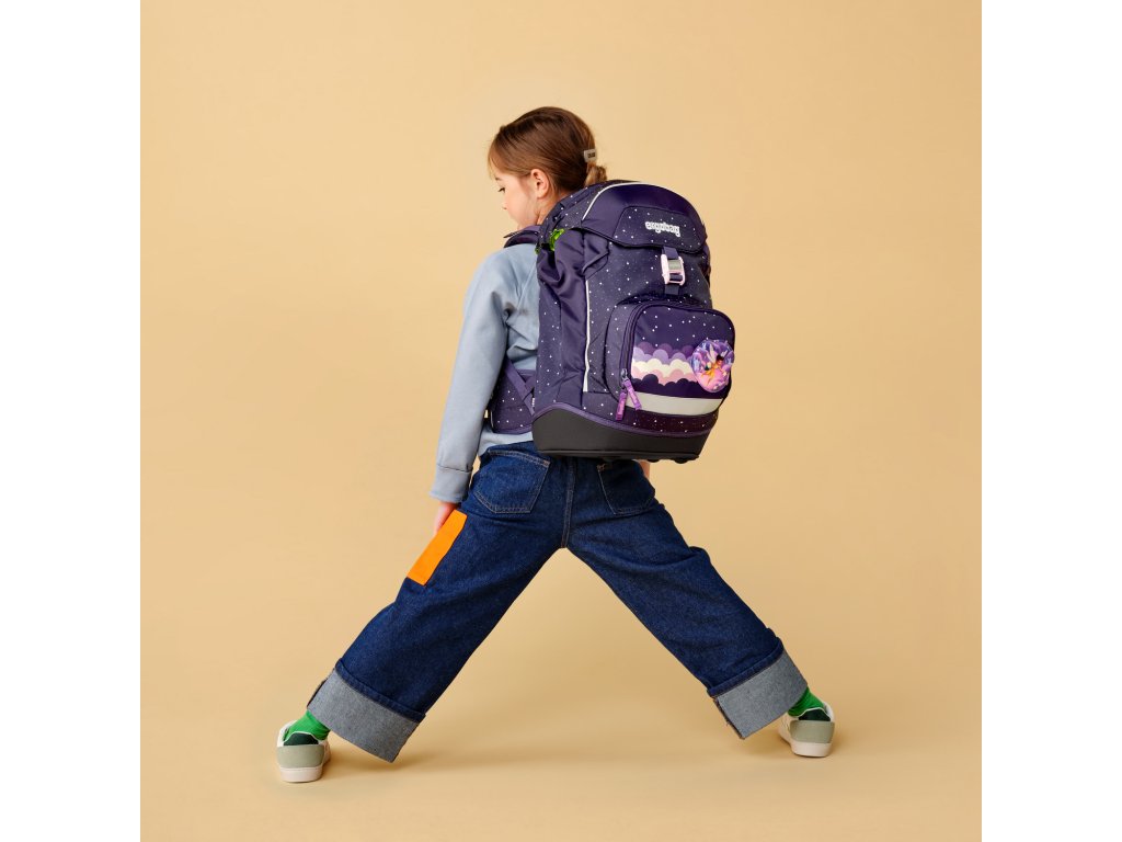 Ergobag prime je uvnitř prakticky rozdělený a svými 20 l nabízí dostatečný prostor pro žáky 1. – 4. třídy. Kompresní šnůrka stahuje celý obsah batohu a přibližuje zátěž k zádům, eliminuje tím působící páku na záda dítěte.