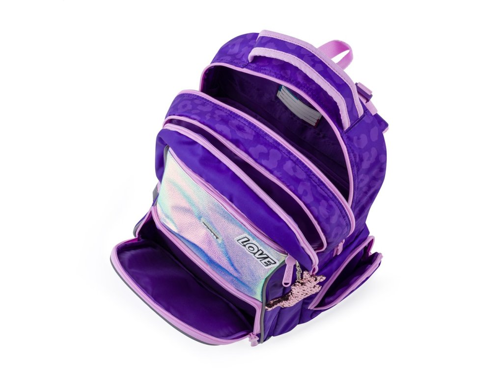 Uvnitř batohu se nachází dvě prostorné vnitřní kapsy, které pojmou učebnice, sešity i další školní pomůcky. Díky většímu množství kapes má každá věc své místo a batoh zůstává přehledný po celý školní den.