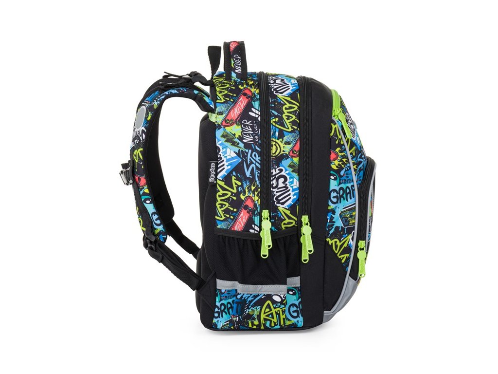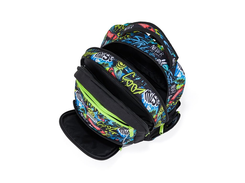 Uvnitř najdete dvě hlavní vnitřní kapsy, které poskytují dostatek místa pro učebnice, sešity i věci na volný čas. Batoh nabízí opravdu velkorysé množství kapes, takže každá drobnost má své místo.
