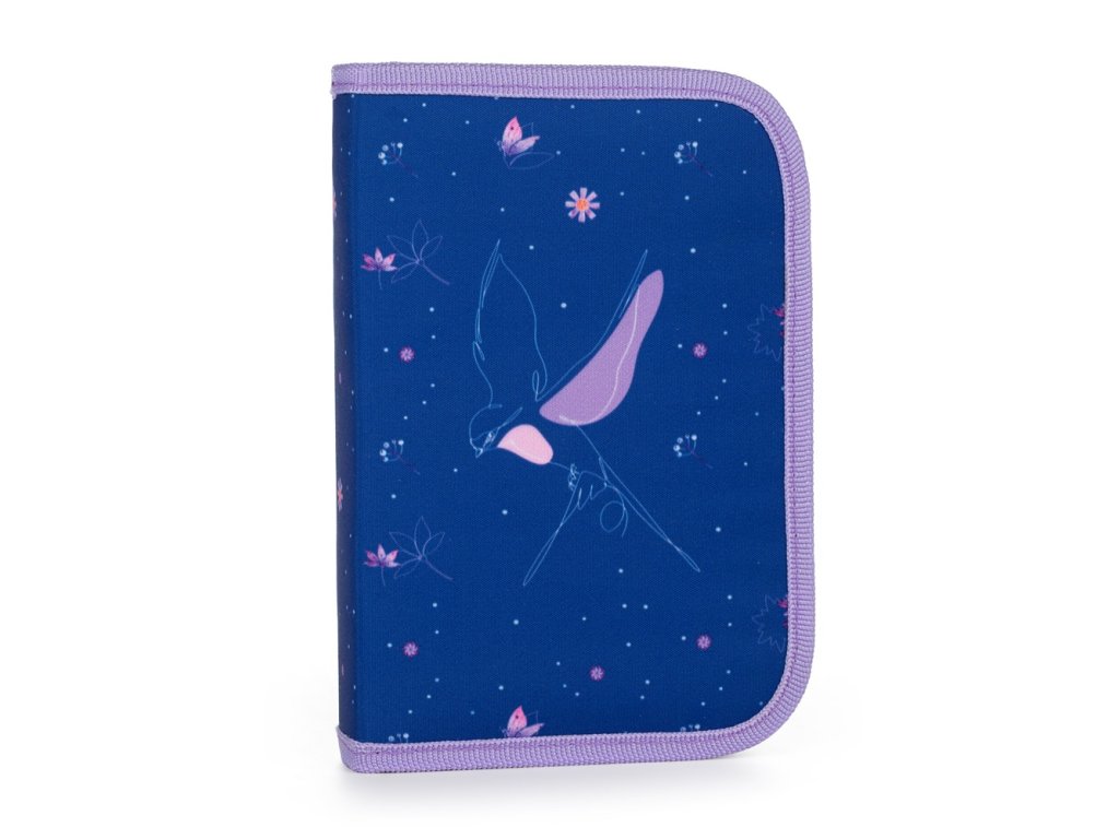 Penál: Jednopatrový školní penál s 2 chlopněmi, prázdný obsahuje 25 gumových poutek pro uchycení psacích potřeb. Na vnitřních chlopních jsou průhledné fólie pro rozvrh hodin.