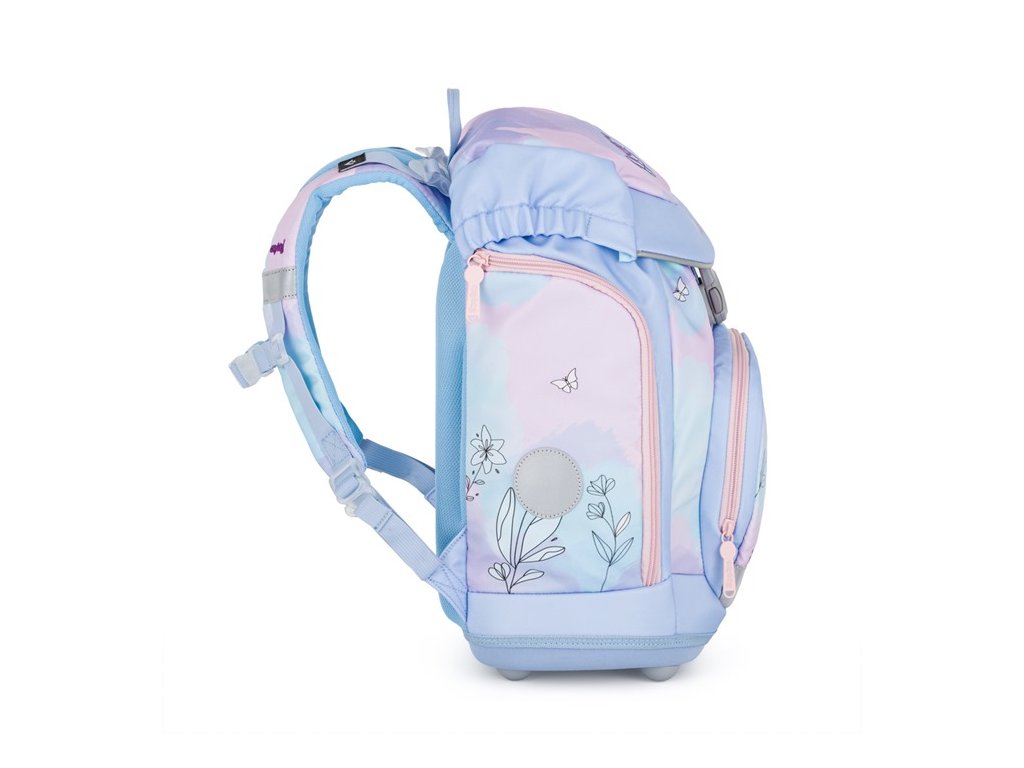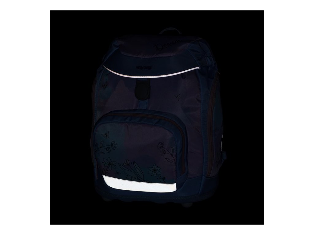 Po stranách se nachází kapsy na zip, ideální na láhev s pitím, a přední kapsa nabízí prostor na svačinu nebo drobnosti. Samozřejmostí jsou reflexní prvky, které zvyšují bezpečnost dítěte na cestě do školy.
