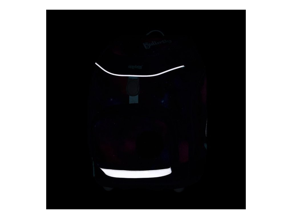 Po stranách se nachází kapsy na zip ideální na láhev s pitím a přední kapsa nabízí další úložný prostor na svačinu nebo drobnosti. Samozřejmostí jsou reflexní prvky pro vyšší bezpečnost dítěte na cestě do školy.