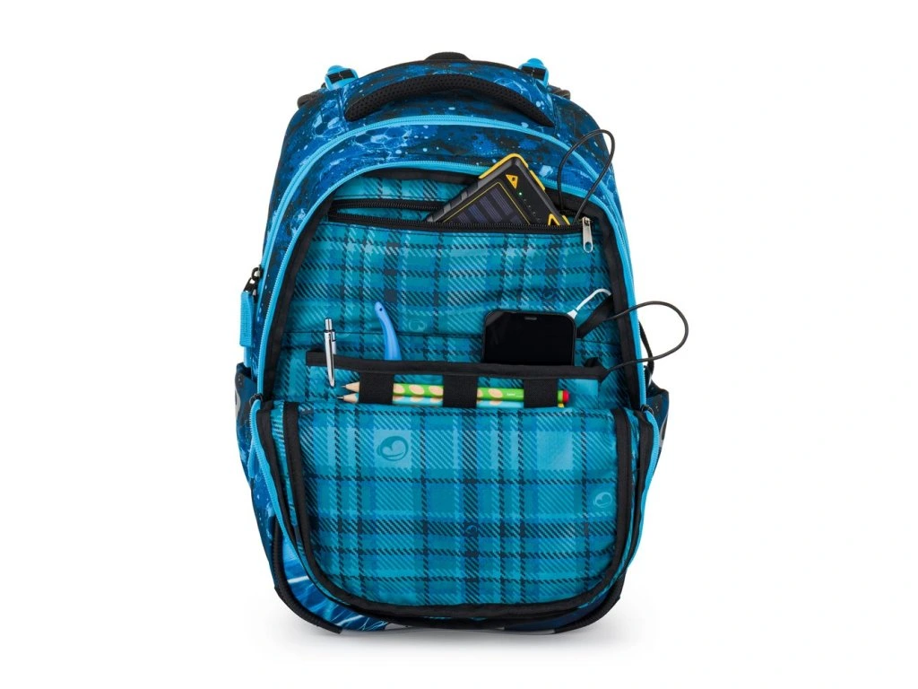 Batoh váží pouze 0,94 kg, takže nezatěžuje dětská záda. Přitom nabízí dostatek prostoru na učebnice, sešity i další školní potřeby.