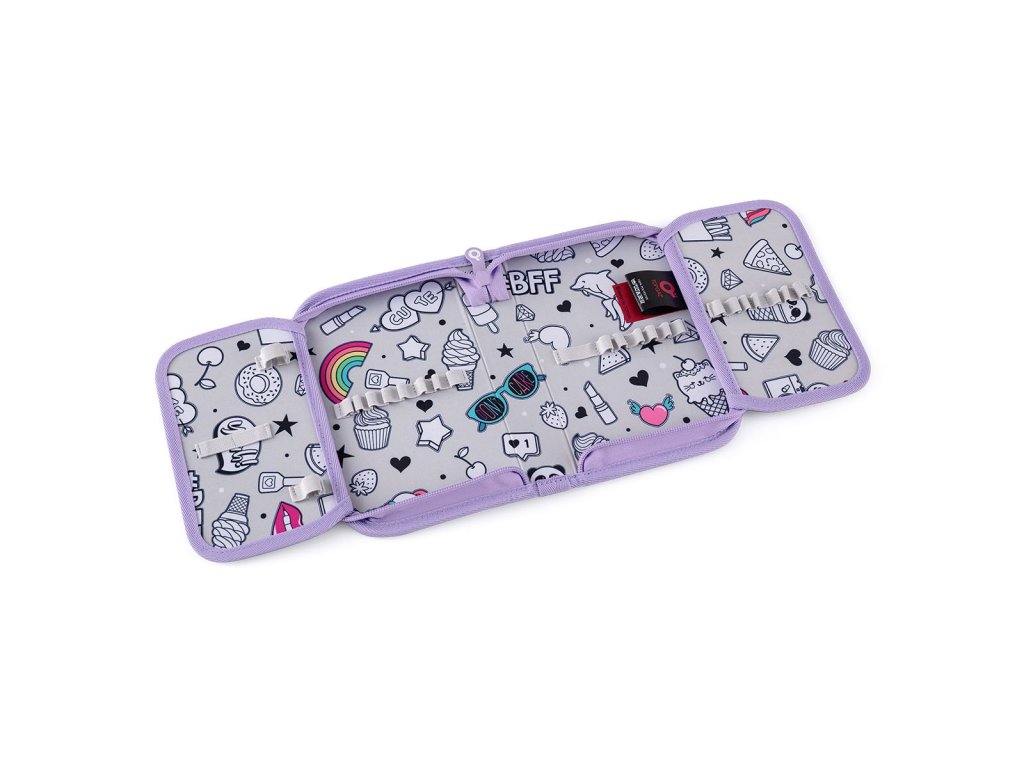 Batoh má dvě hlavní objemné komory. Zadní komora batohu je širší, proto do ní vložte nejtěžší učivo a směrem dopředu odlehčujte. V prostřední komoře je umístěna síťová kapsa na zip a jmenovka.