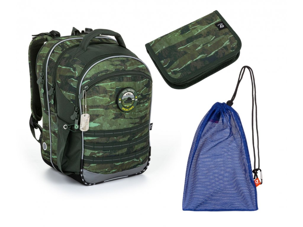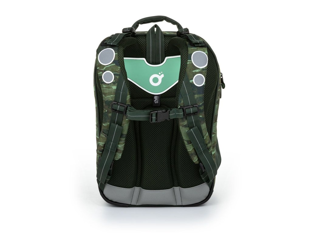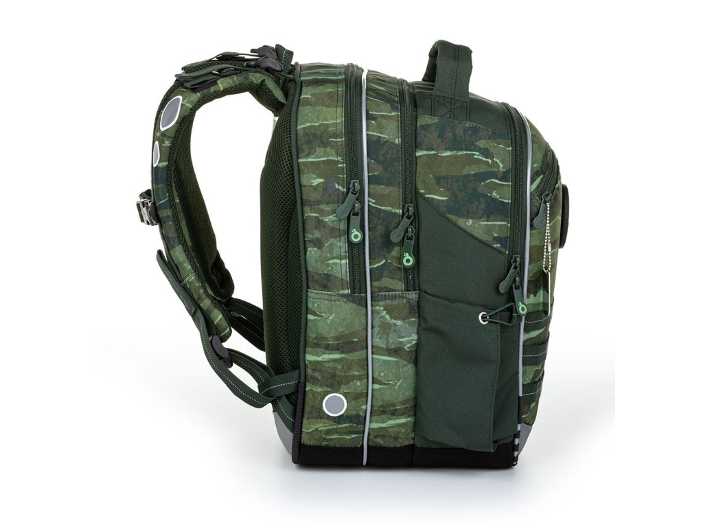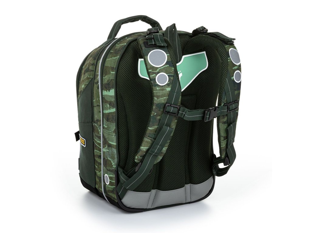 Tříkomorový model COCO je oblíbeným střihem drobných kluků v první třídě, ale i školáků ve vyšších ročnících prvního stupně ZŠ. Dominantou batohu je přívěsek vojenské známky a hravé magnety s vojenskou tématikou. A když o magnetky nebude zájem? Jednoduše se dají oddělat, aniž by narušily celkový design batohu.