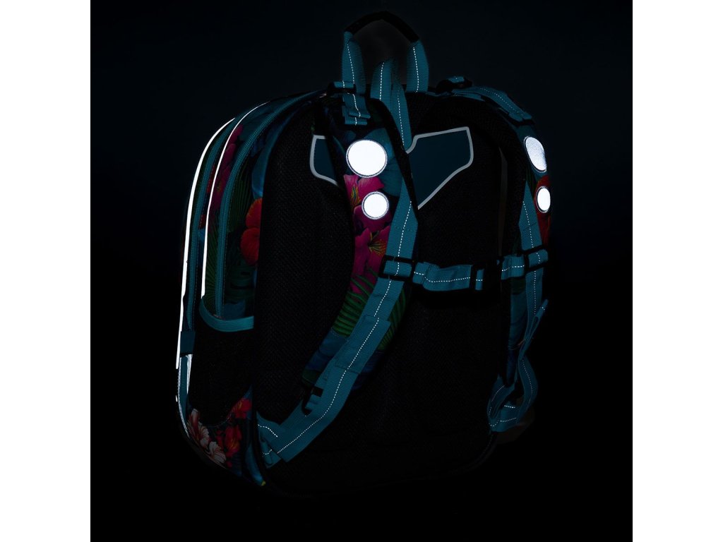 - reflexní prvky: na čele a bocích batohu, na ramenních popruzích