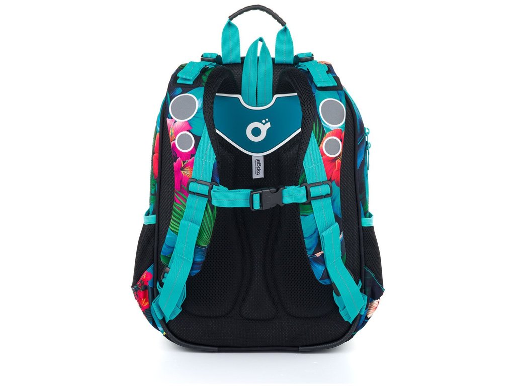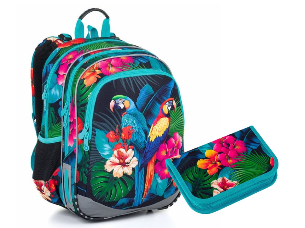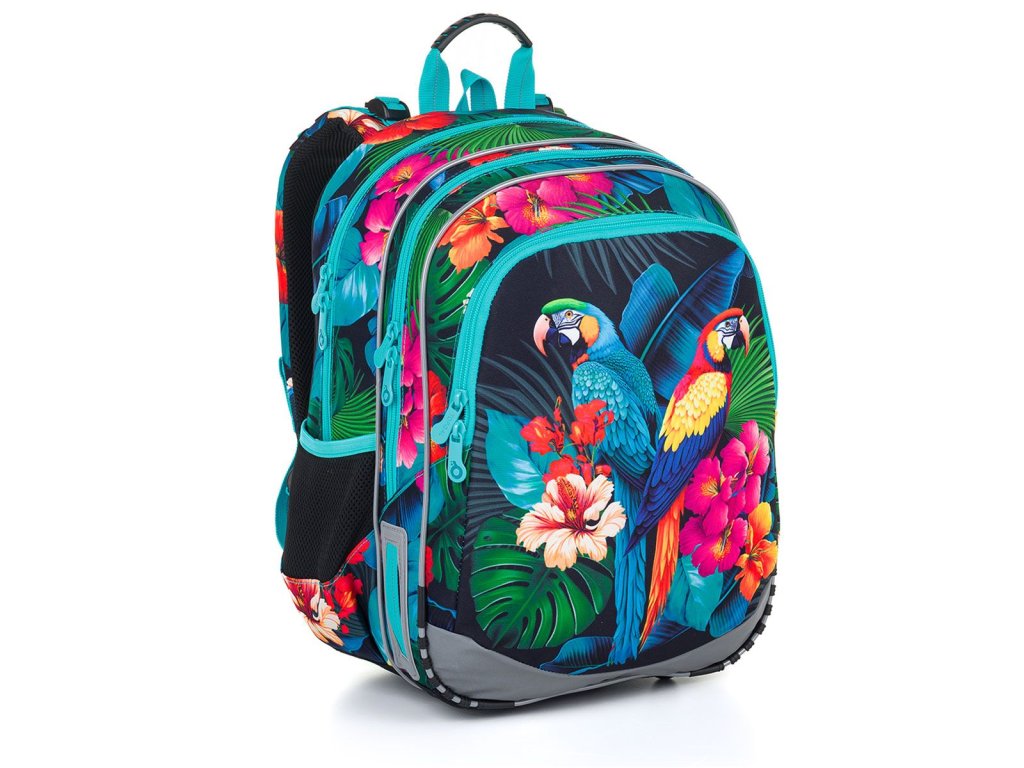 Model ELLY neváží ani kilogram, proto je ideální pro slečny od první až do čtvrté třídy ZŠ s výškou od 115 cm. Díky barevným papouškům Ara malá studentka nesplyne s davem.