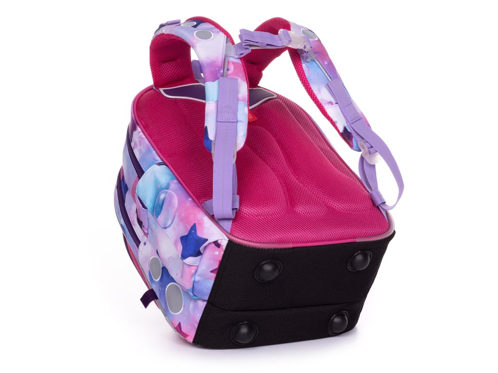 Díky pevným lisovaným zádům je konstrukce batohu ENDY velmi lehká. Proto jej můžeme doporučit i pro drobné dívky pod 120 cm. Díky dvěma komorám a hluboké přední kapse ale objemem určitě vydrží nejméně do třetí třídy ZŠ.