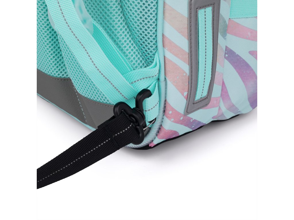Zadní komora batohu je ideální na přenášení nejtěžších učebnic. Do přední komory jsme přidali praktickou síťovou kapsičku na zip, třeba na doklady. Hluboká kapsa mezi přední komorou a kapsou na čele batohu má užší vstup, proto se skvěle hodí pro ve stejném designu.