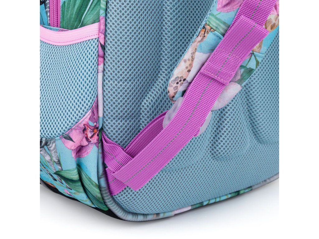 Model ELLY neváží ani kilogram, proto je ideální pro holčičky od první až do čtvrté třídy ZŠ. Rozkvetlé Safari plné žiraf, zeber, gepardů a tukanů navštívila také plyšová panda.