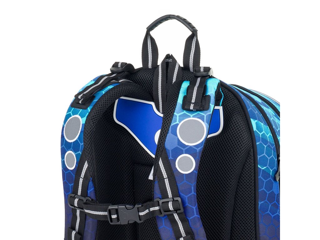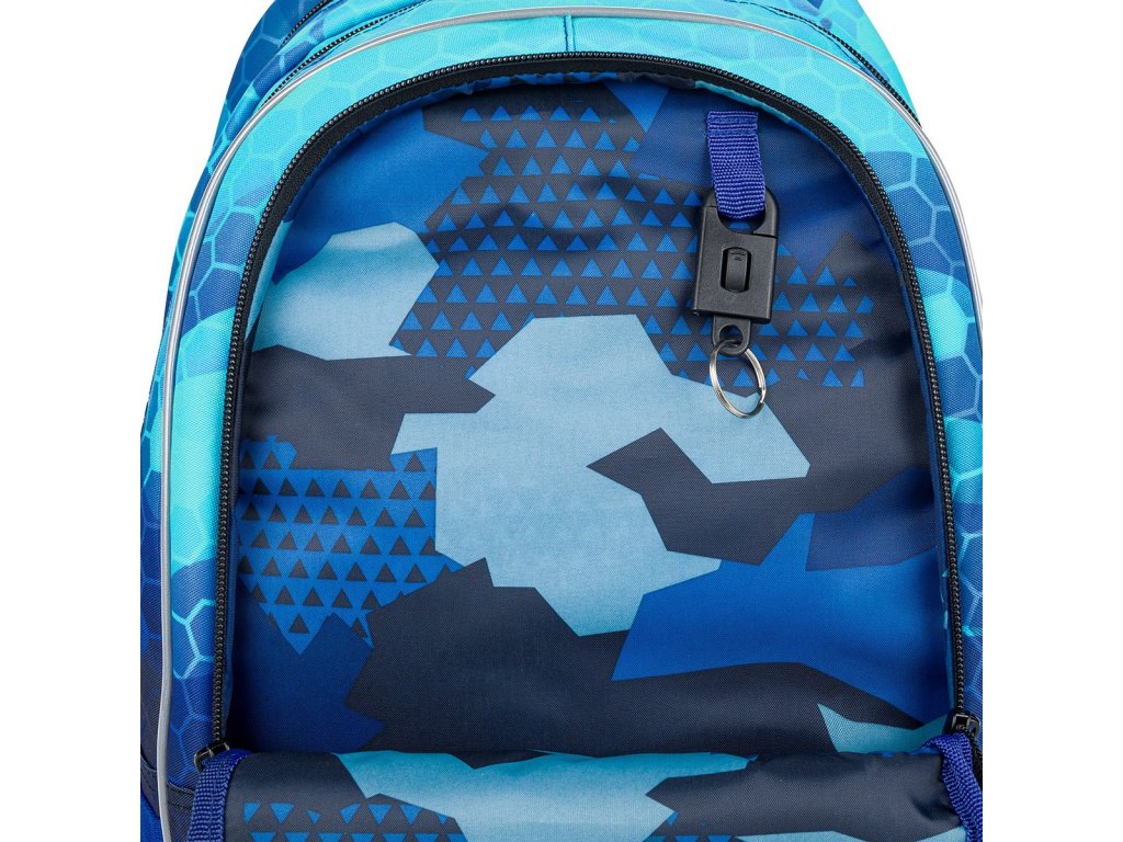 Batoh má dvě hlavní objemné komory. Zadní komora batohu je užší než přední, radíme do ní dát nejtěžší učivo a směrem dopředu odlehčovat. V přední komoře je umístěna síťová kapsa na zip a jmenovka.