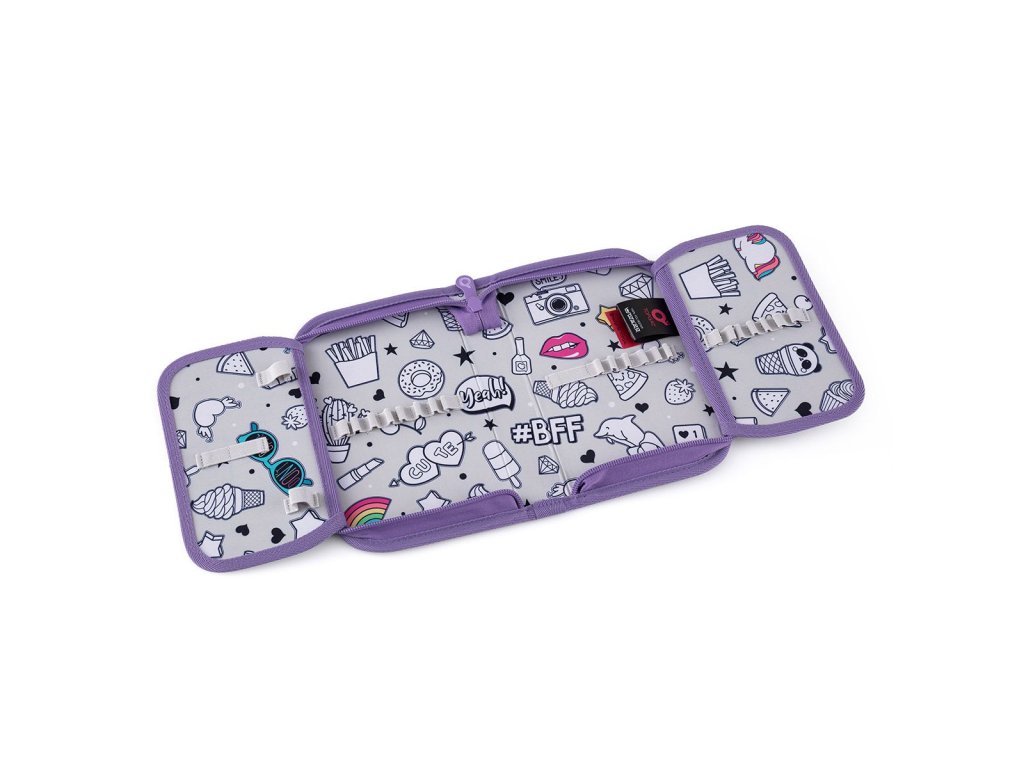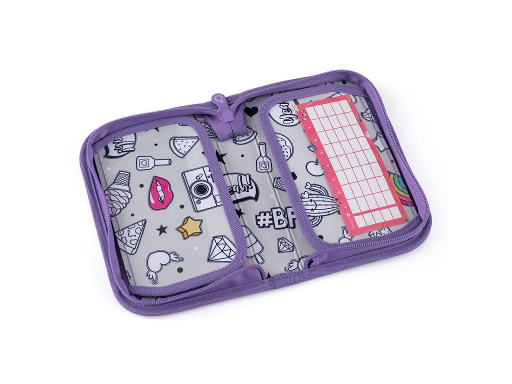 Třetí (přední) komora slouží např. na penál PENN 24006 ve stejném designu nebo krabičku na svačinku. Do bočních kapes se vejdou zdravé lahve ZIVA o objemu 0,5 litru.