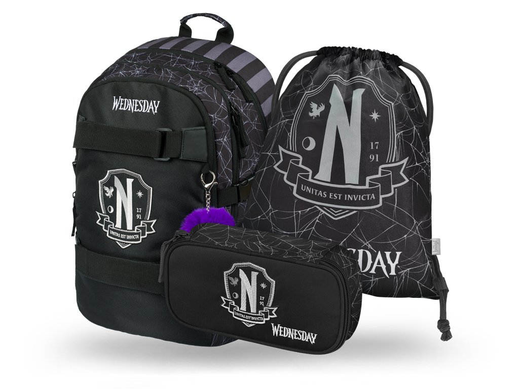 Školní batoh v setu Baagl Skate- Wednesday Nevermore