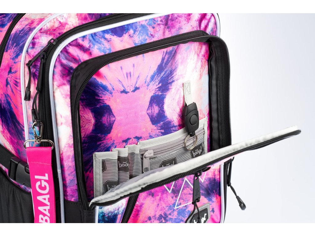 Batoh je vyroben z pevného voděodolného materiálu, má nízkou hmotnost 1 200 g, objem 29 l a nosnost 7 kg. Reflexní prvky zajišťují bezpečnost na cestě do školy. Součástí je růžový přívěsek s logem BAAGL.