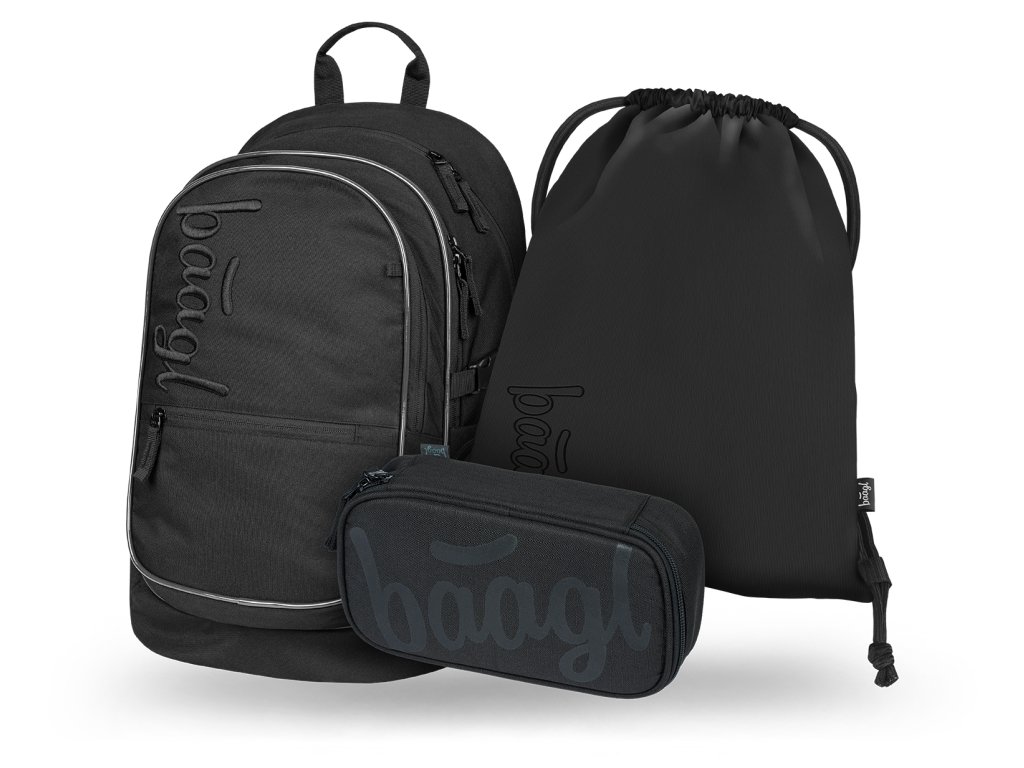 Školní set Core Uni černý – batoh, penál a sáček (Baagl)