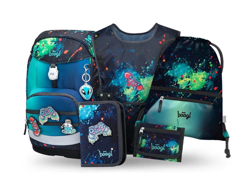 🎒 Školní set pro prvňáčky Baagl Airy Plus Chill II je praktická pětidílná školní výbava pro děti od 1. třídy základní školy. Set obsahuje vše potřebné pro pohodový začátek školního roku.