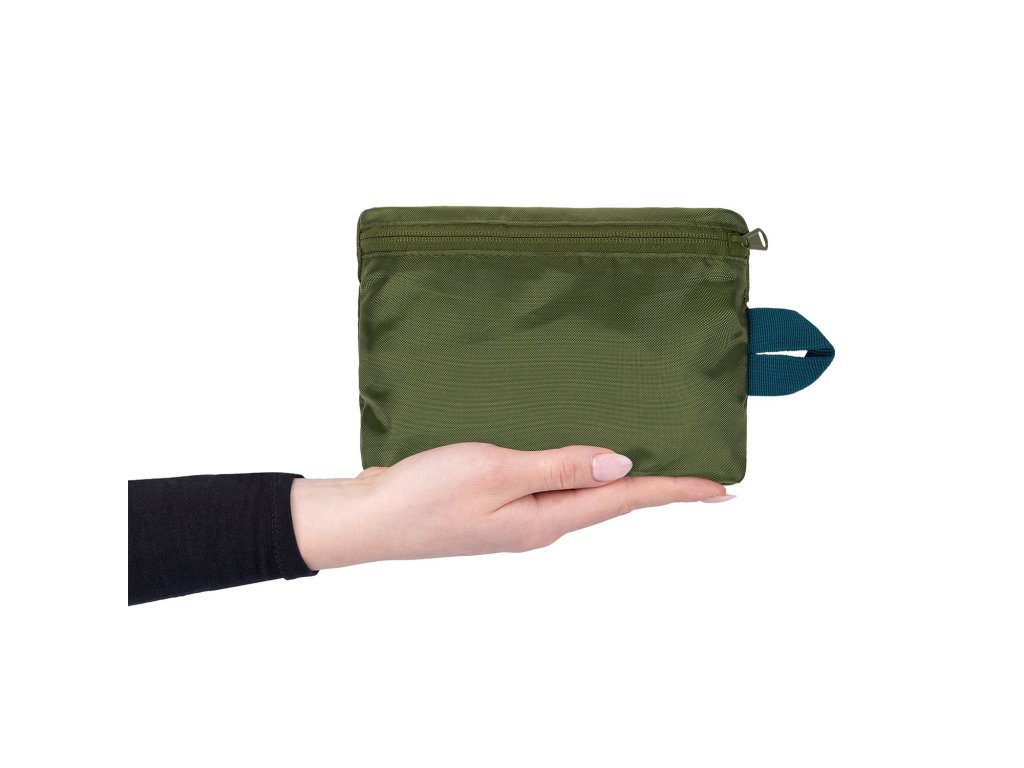 Dá se složit do integrované kapsy a připnout k batohu jako záložní zavazadlo.